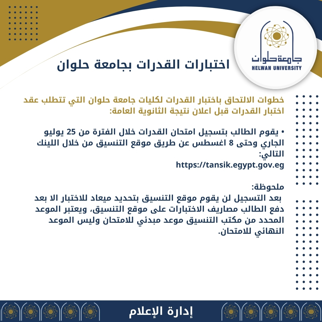 تعرف على كل ما يخص اختبارات القدرات بجامعة حلوان