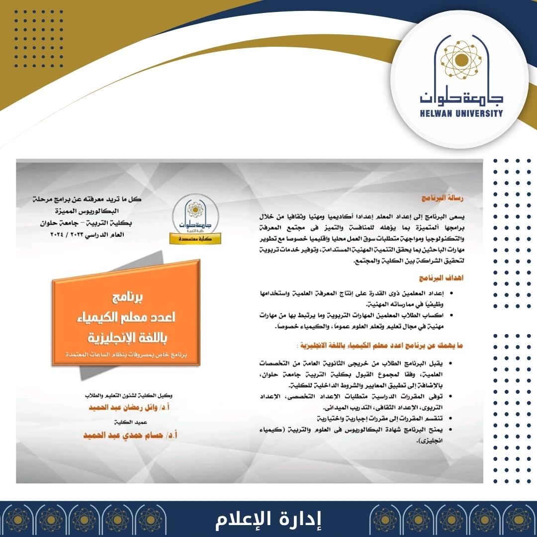 برنامج إعداد معلم الكيمياء باللغة الإنجليزية