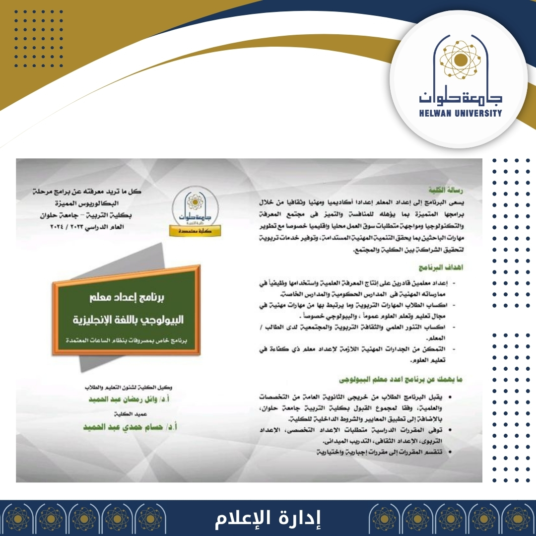 برنامج إعداد معلم البيولوجي باللغة الإنجليزية