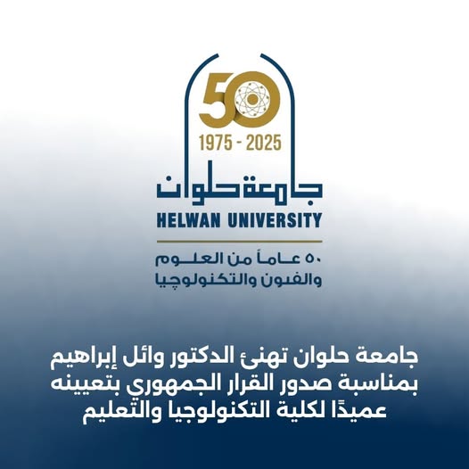 جامعة_حلوان تهنئ الدكتور وائل إبراهيم أحمد علي بمناسبة صدور القرار الجمهوري بتعيينه عميدًا لكلية التكنولوجيا والتعليم