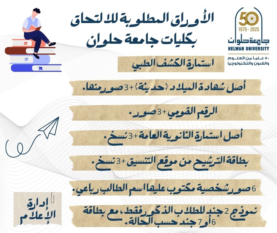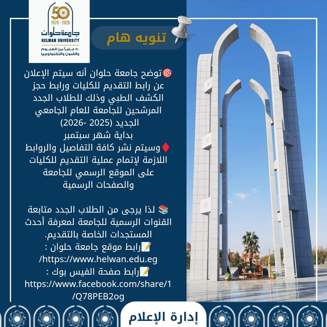 جامعة حلوان تُعلن الأوراق المطلوبة للتقديم في الكليات