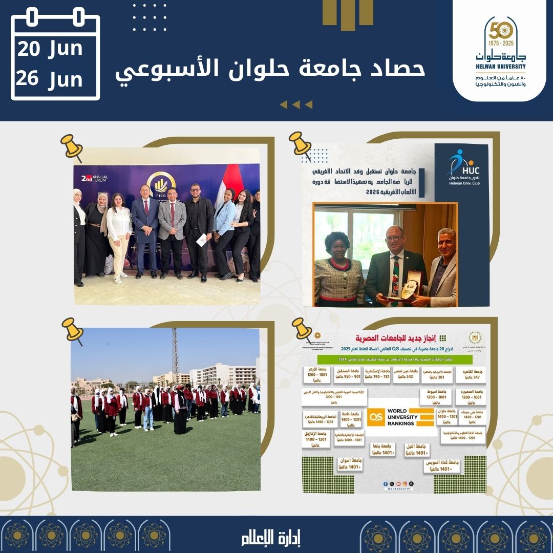 "جامعة حلوان هذا الأسبوع: تقدم ملموس في التصنيفات الدولية وإنجازات بارزة "