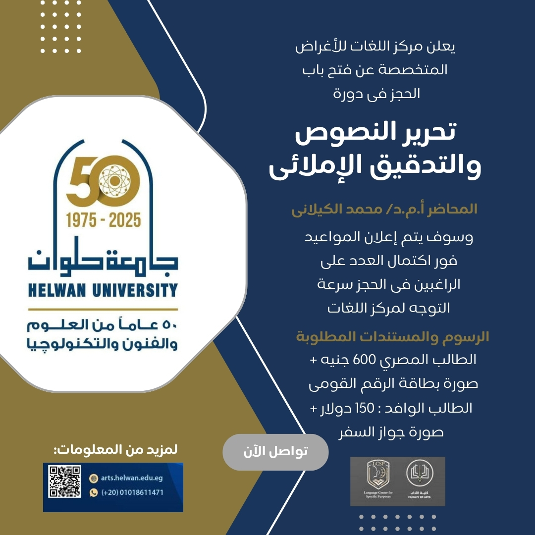 جامعة حلوان تطلق دورة احترافية في تحرير النصوص والتدقيق الإملائي