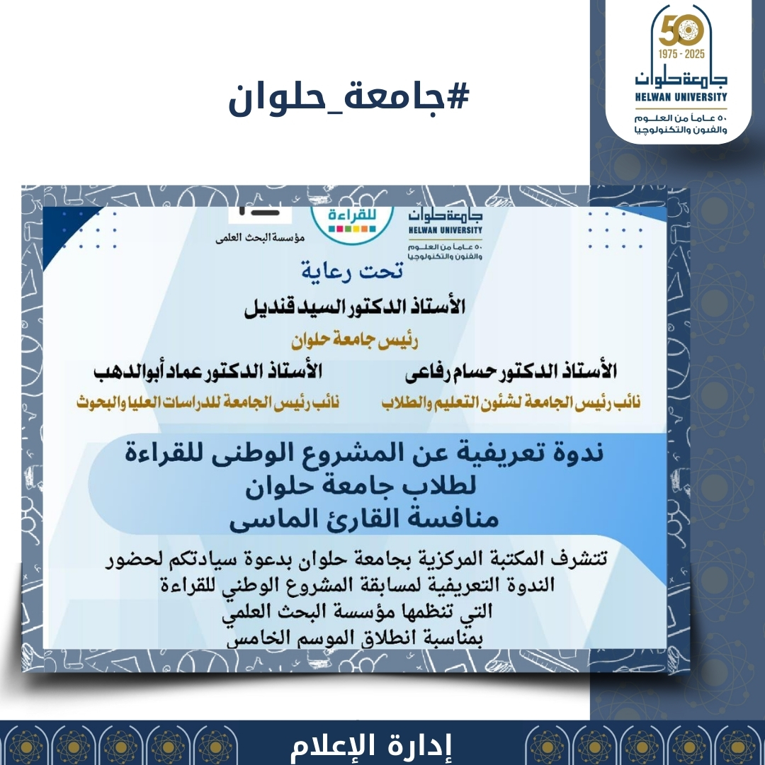 دعماً للقراءة والإبداع.. جامعة حلوان تنظم ندوة تعريفية بمسابقة "القارئ الماسي
