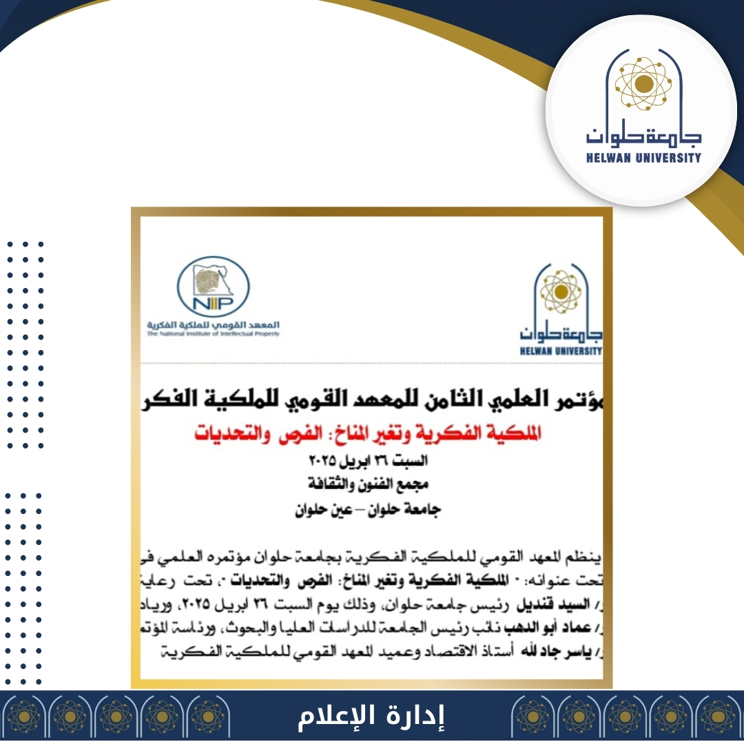 جامعة حلوان تنظم المؤتمر العلمي الثامن للملكية الفكرية