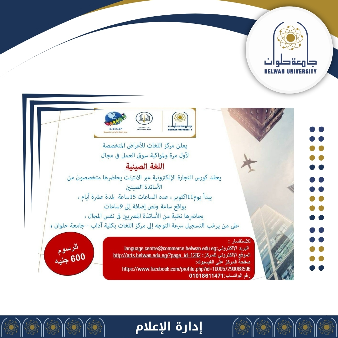 مركز اللغات بجامعة حلوان يطلق دورة الترجمة للتجارة الالكترونية باللغة الصينية