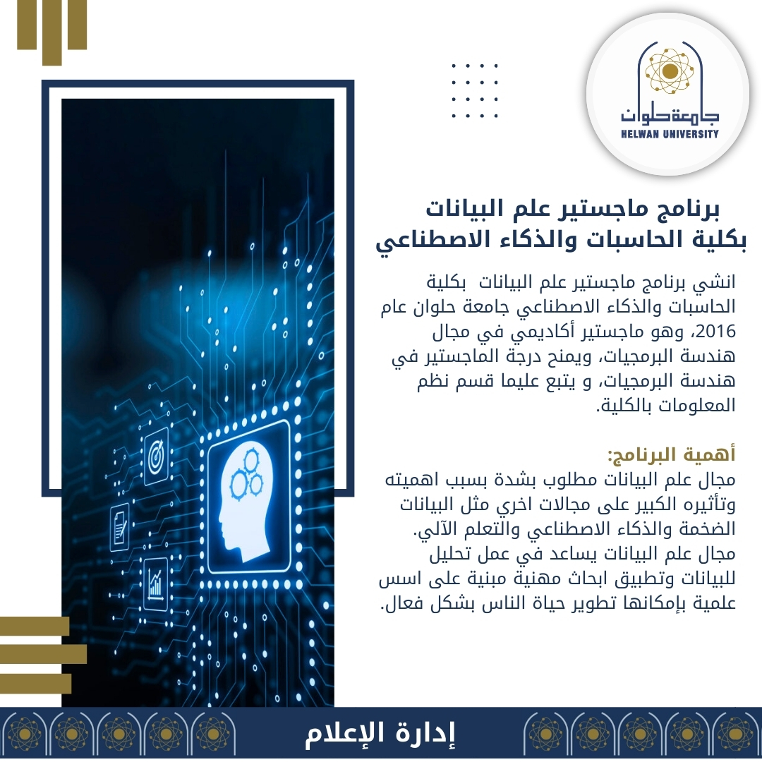 ماجستير علم البيانات بكلية الحاسبات والذكاء الاصطناعي