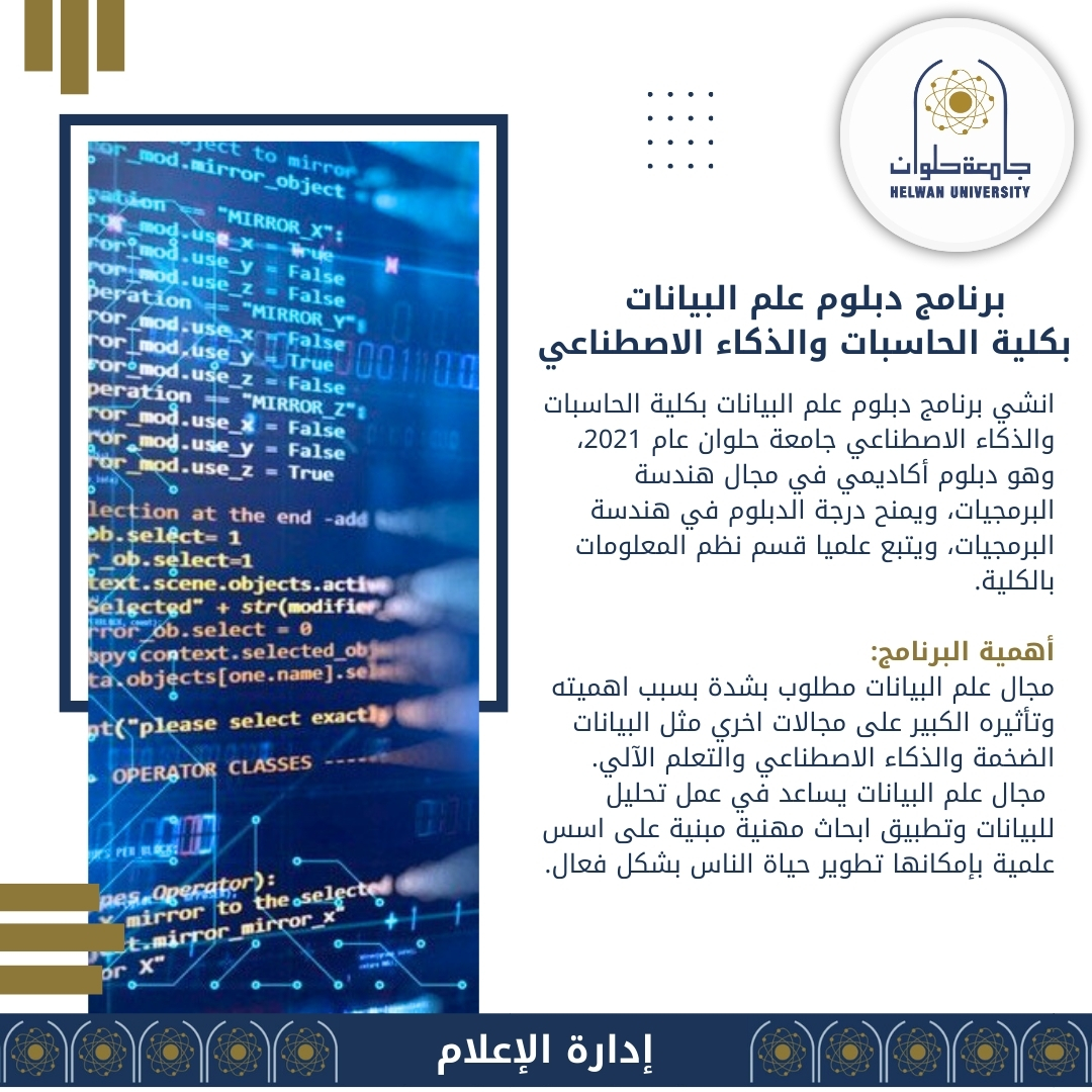 برنامج دبلوم علم البيانات بكلية الحاسبات والذكاء الاصطناعي